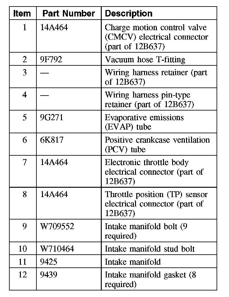 1. NOTE: Electrical and vacuum harnesses must not restrict movement of the charge motion control valve (CMCV) control rods at rear of the intake manifold. Use extreme care on installation of the intake manifold to prevent any pinching of electrical and vacuum harnesses.