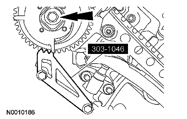 14. CAUTION: Damage to the camshaft phaser sprocket assembly will occur if mishandled or used as a lifting or leveraging device.