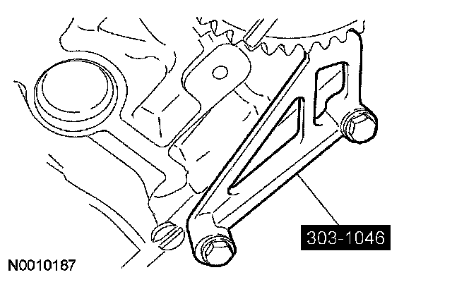 NOTE: The lower half of the timing chain must be positioned above the tensioner arm dowel.