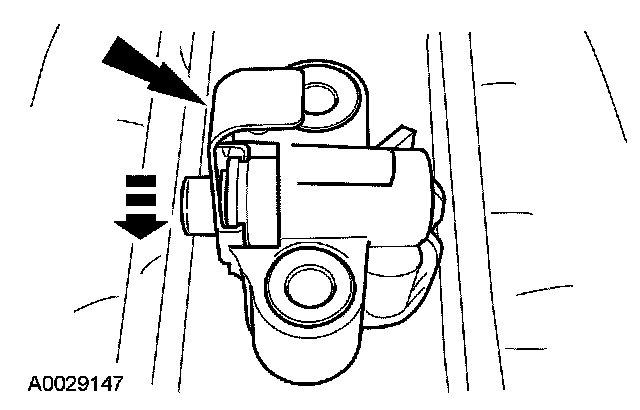9. Install a retaining clip on the tensioner to hold the plunger in during installation.
