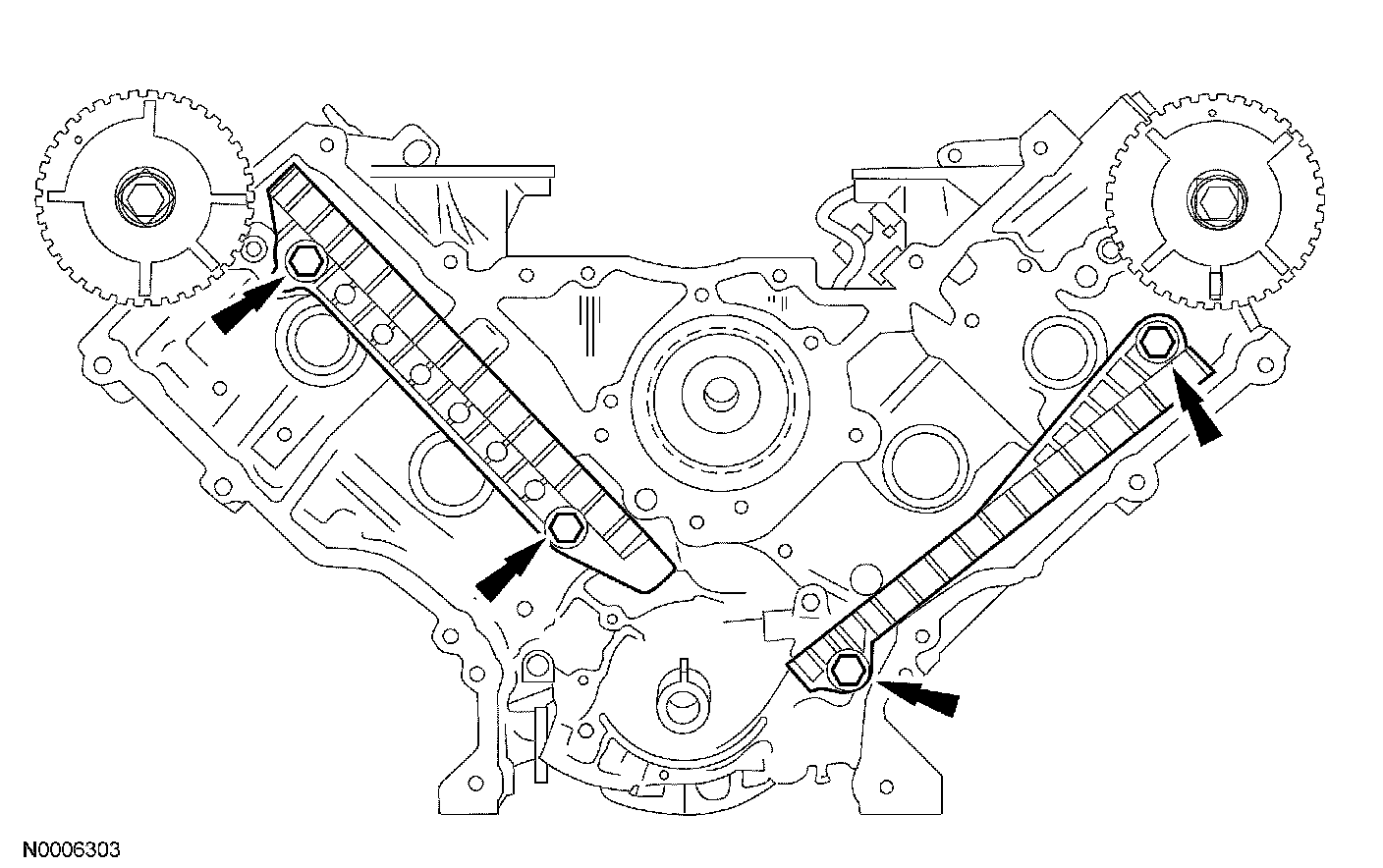 Inspect the RH and LH timing chain tensioners.