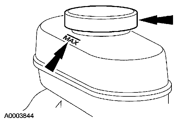 2. Clean all the dirt from the area, remove the brake master cylinder reservoir cap and fill the brake master cylinder reservoir with clean, specified brake fluid.