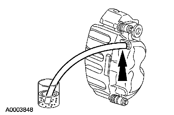 CAUTION: Do not allow the brake master cylinder reservoir to run dry during the bleeding operation. Keep the brake master cylinder reservoir filled with clean, specified brake fluid. Never reuse the brake fluid that has been drained from the hydraulic system.