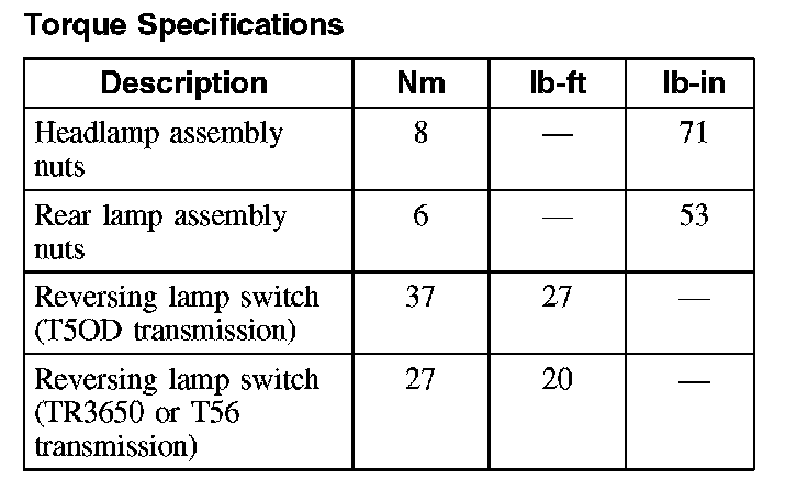 Torque Specifications: