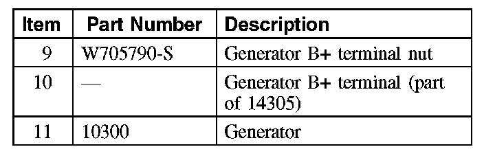 10. Position the generator B+ protective boot aside, remove the nut and position the generator B+ terminal aside.