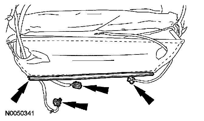 7. Release the inner J-strip at the bottom of the backrest trim cover and remove all electrical connectors.