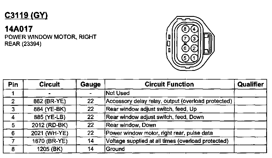 Power Window Motor, Right Rear