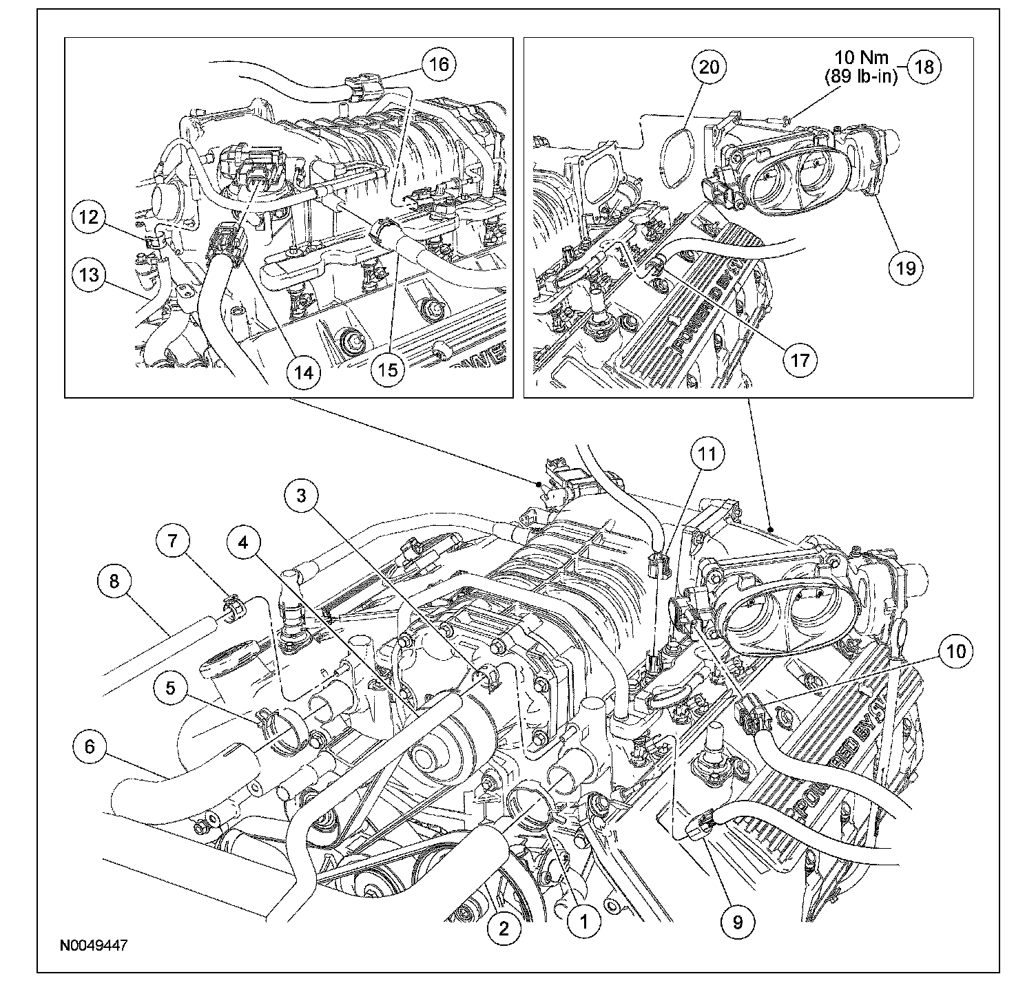 - Tighten in the sequence shown to 10 Nm (89 inch lbs.).