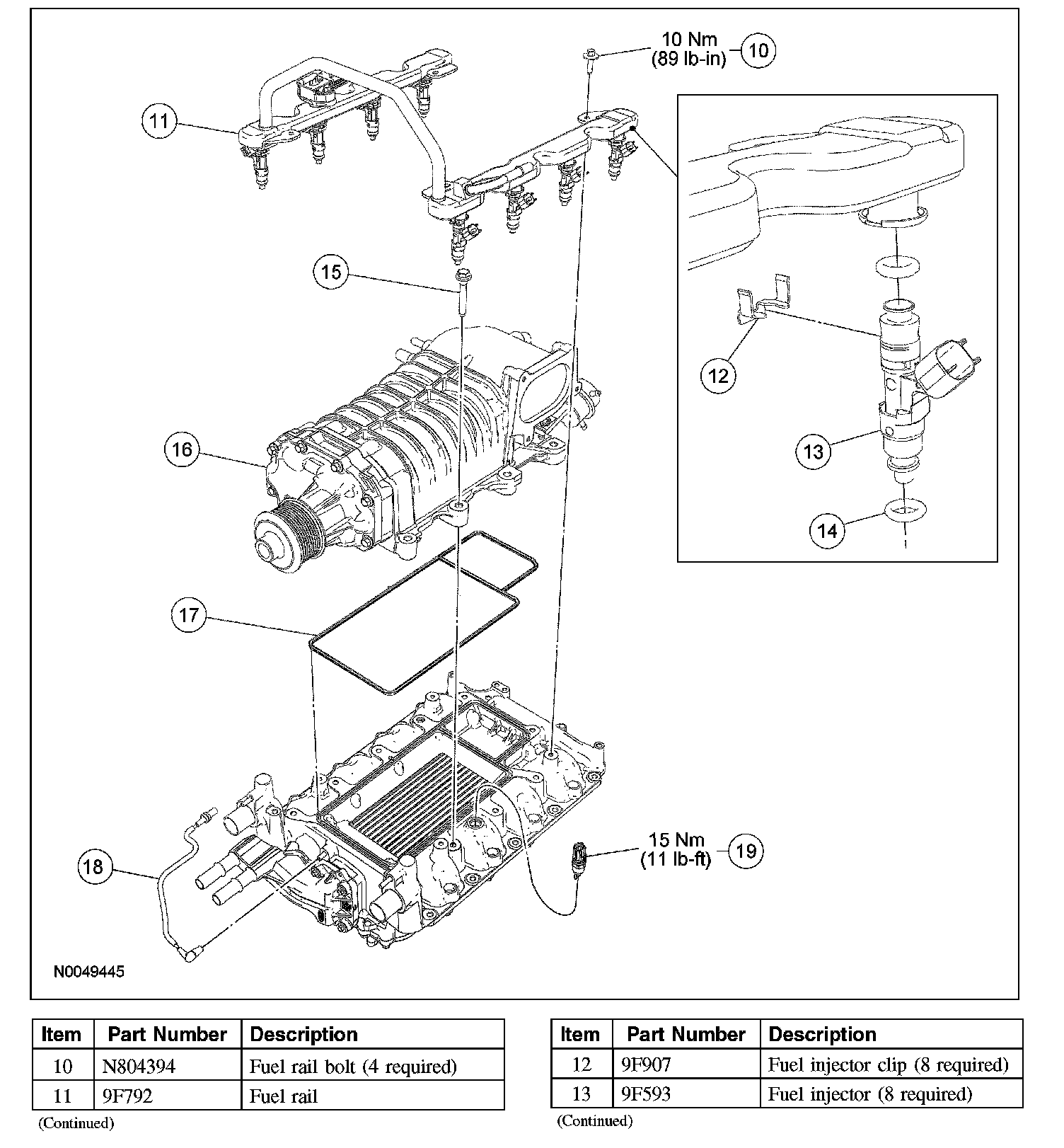 10. Install the fuel rail and fuel injector assembly onto the intake manifold.
