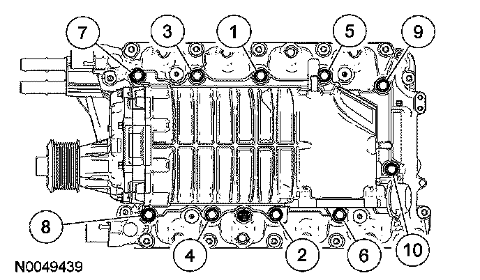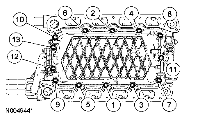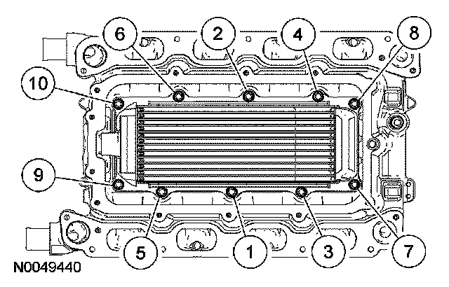 - Tighten in the sequence shown to 10 Nm (89 inch lbs.).