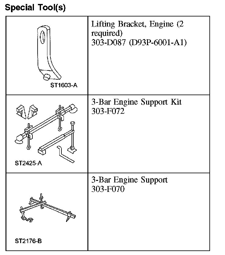 2. Using the special tools, raise the engine.