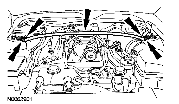 5. Remove the 4 nuts and the strut tower cross brace.