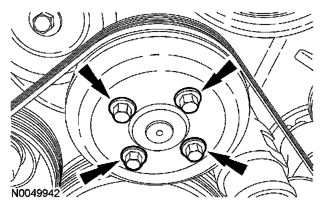 7. Loosen the 4 coolant pump pulley bolts.