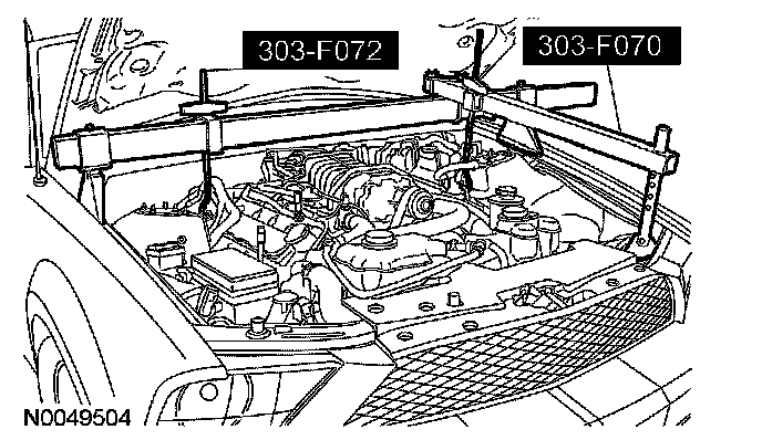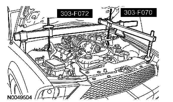 25. NOTE: The heavy duty 3-bar support (303-F070) must be used with the draw screws from the light duty 3-bar support (303-F072). This will provide enough clearance between the supercharger (SC) and the 3-bar support, and enough clearance between the draw screw and the vehicle hood.