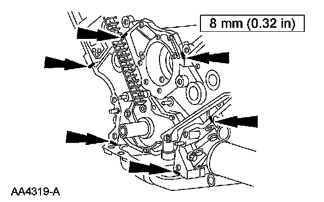 1. NOTE: If the engine front cover is not secured within 4 minutes, the sealant must be removed and the sealing area cleaned with metal surface cleaner. Allow to dry until there is no sign of wetness or 4 minutes, whichever is longer. Failure to follow this procedure can result in future oil leakage.