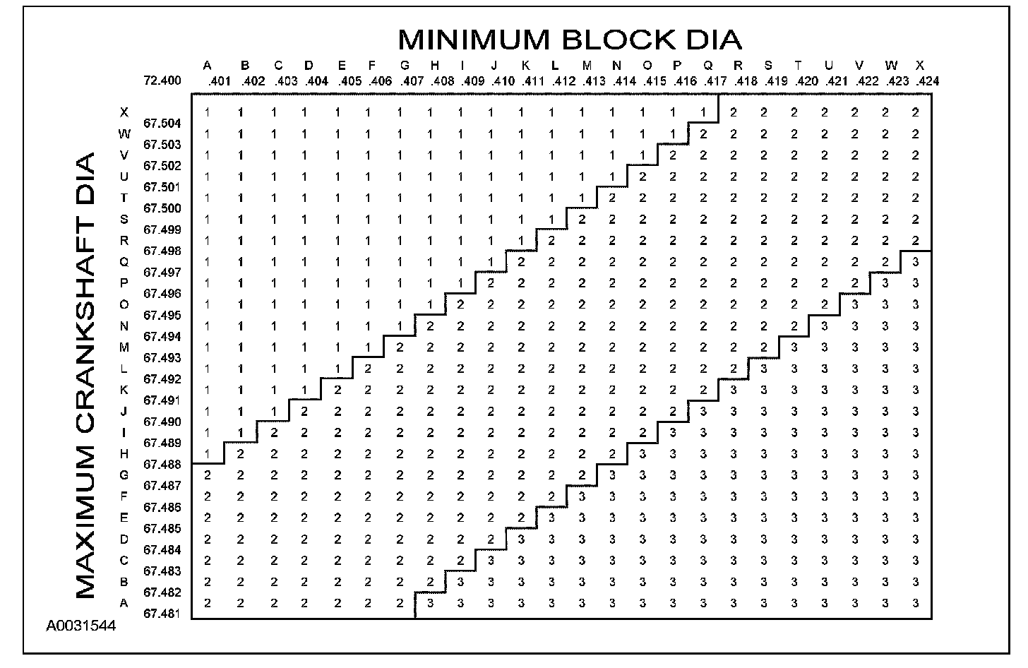 Main bearing journal diameter 67.481-67.505 mm (2.6567-2.6577 inch)