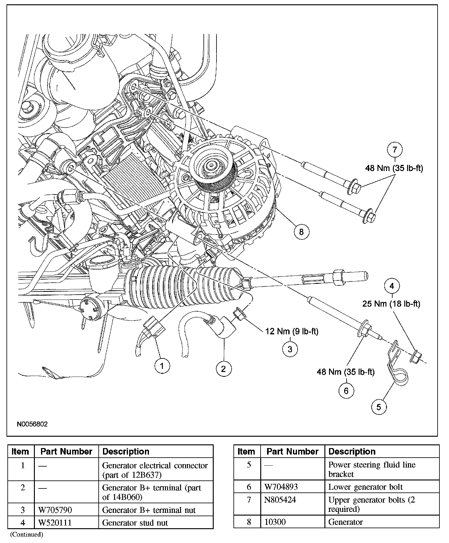 9. Position the generator B+ protective boot aside, remove the nut and position the generator B+ terminal aside.