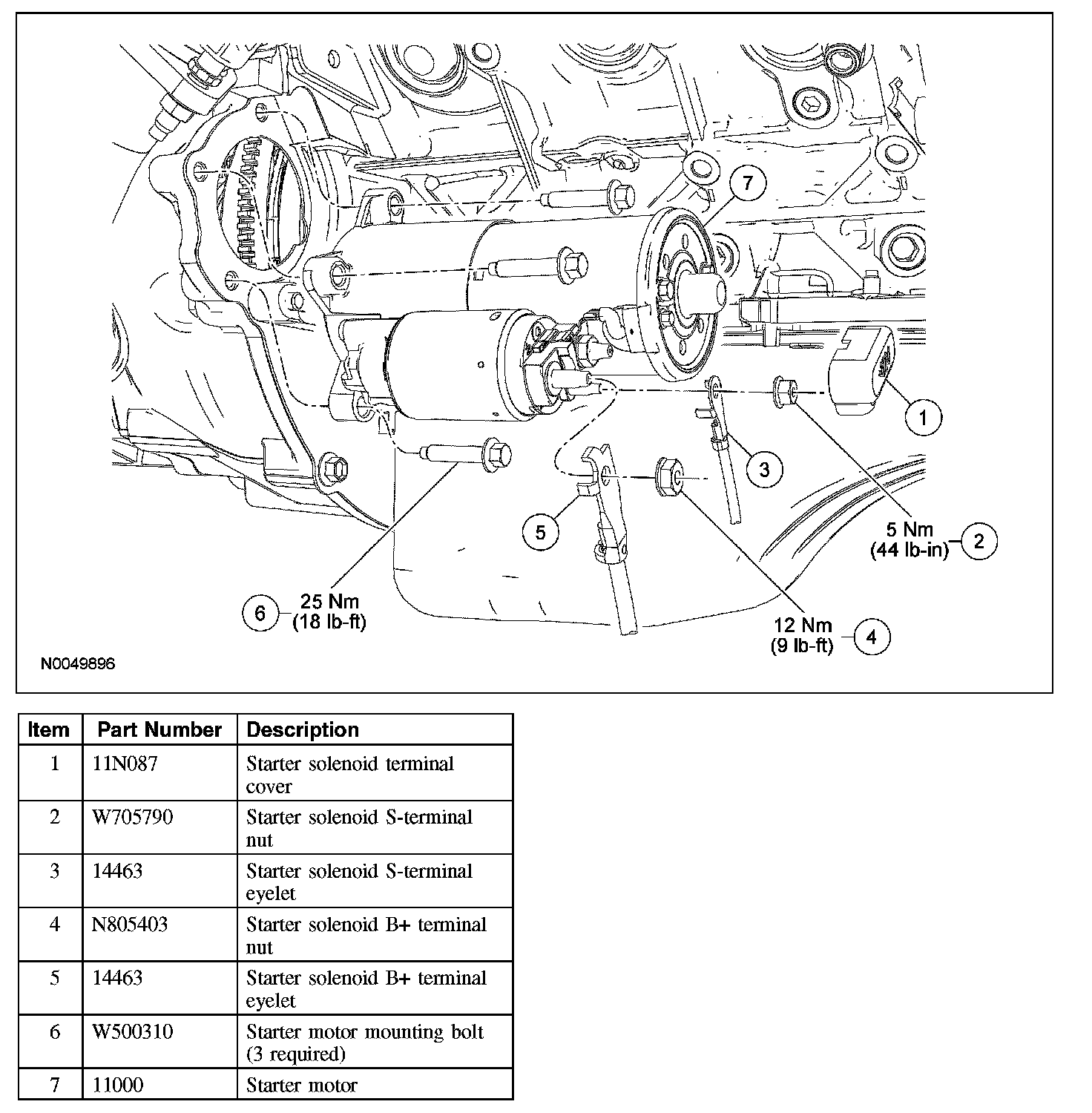 - When working in area of the starter motor, be careful to avoid touching hot exhaust components. Failure to follow these instructions can result in personal injury.