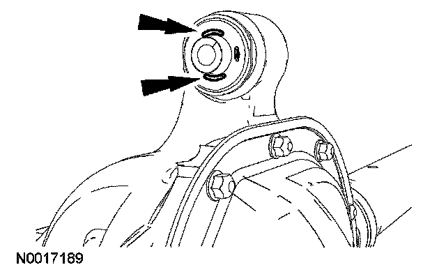 1. Position the new bushing into the rear axle bracket with the voids in the rubber positioned at the top and bottom of the bushing.