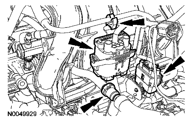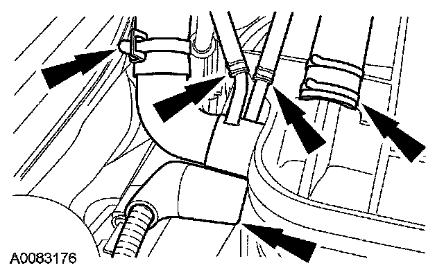 9. Connect the engine vacuum harness, brake booster hose, the crankcase breather hose and coolant hoses.