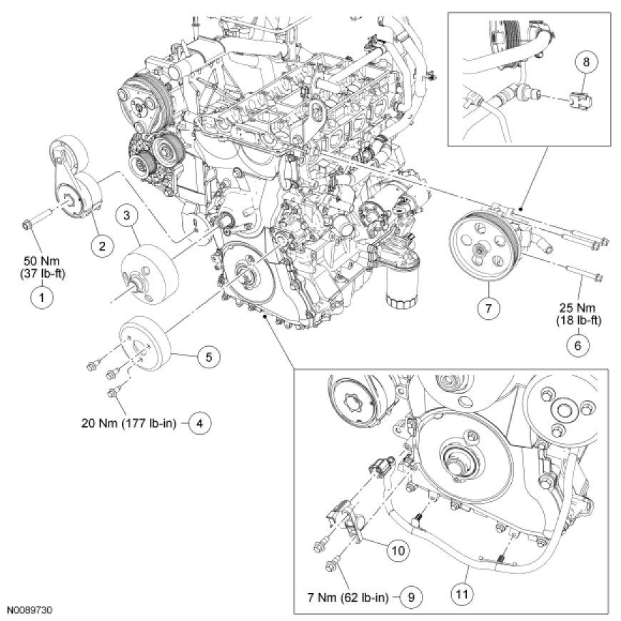 - Tighten to 50 Nm (37 lb-ft).