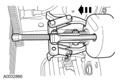 Using a 3-jaw puller, remove the fan drive pulley.