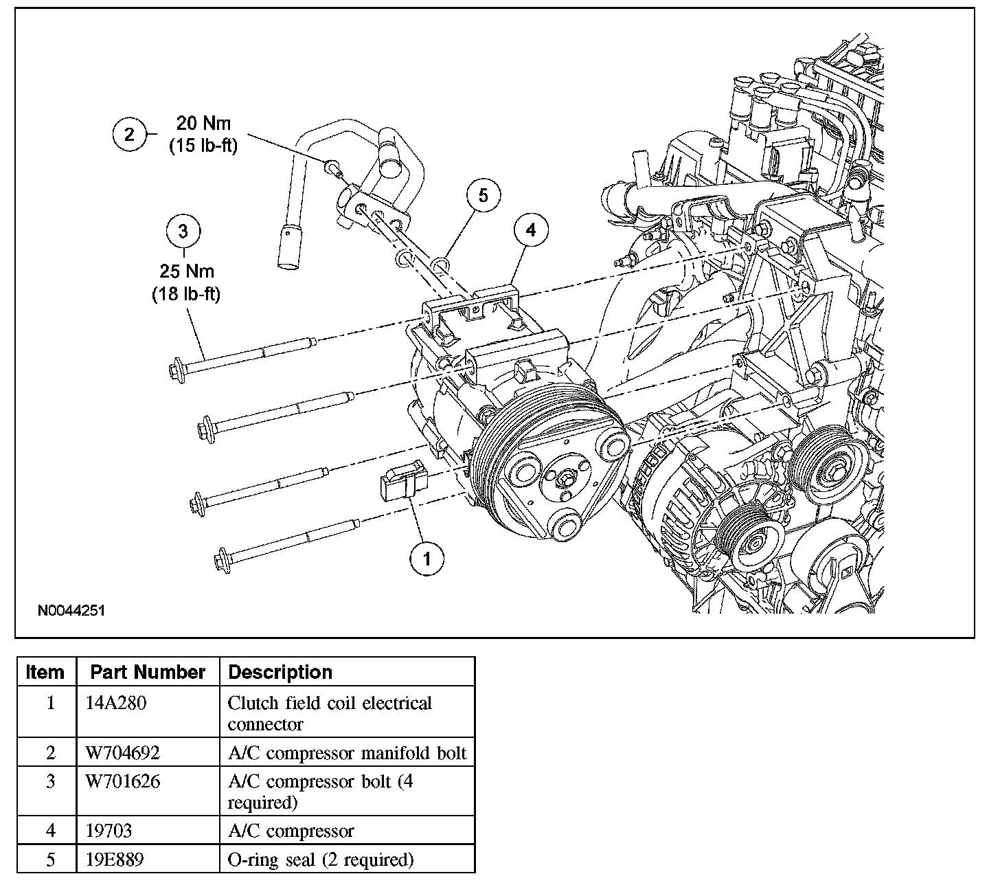 - If installing a new A/C compressor, the A/C clutch disc and hub, A/C compressor pulley and A/C clutch field coil must be inspected and transferred from the old unit to the new unit if suitable for reuse.