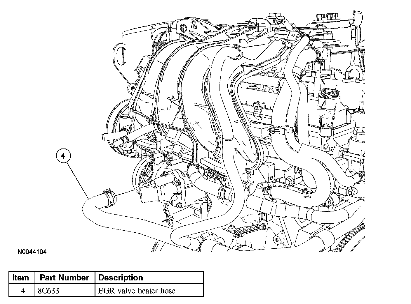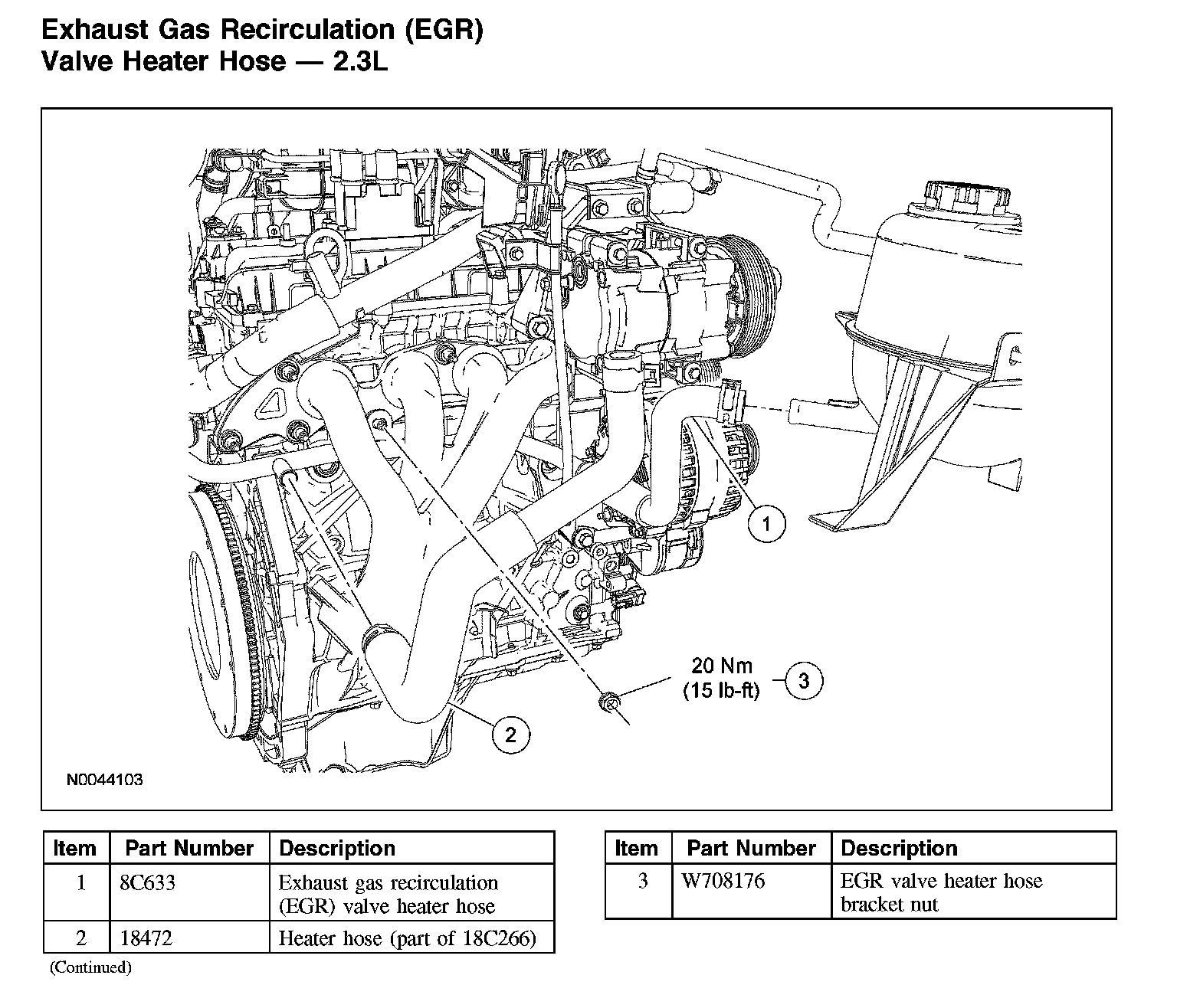 Exhaust Gas Recirculation (EGR) Valve Heater Hose - 2.3LExhaust Gas Recirculation (EGR) Valve Heater Hose - 2.3L (Part 1):