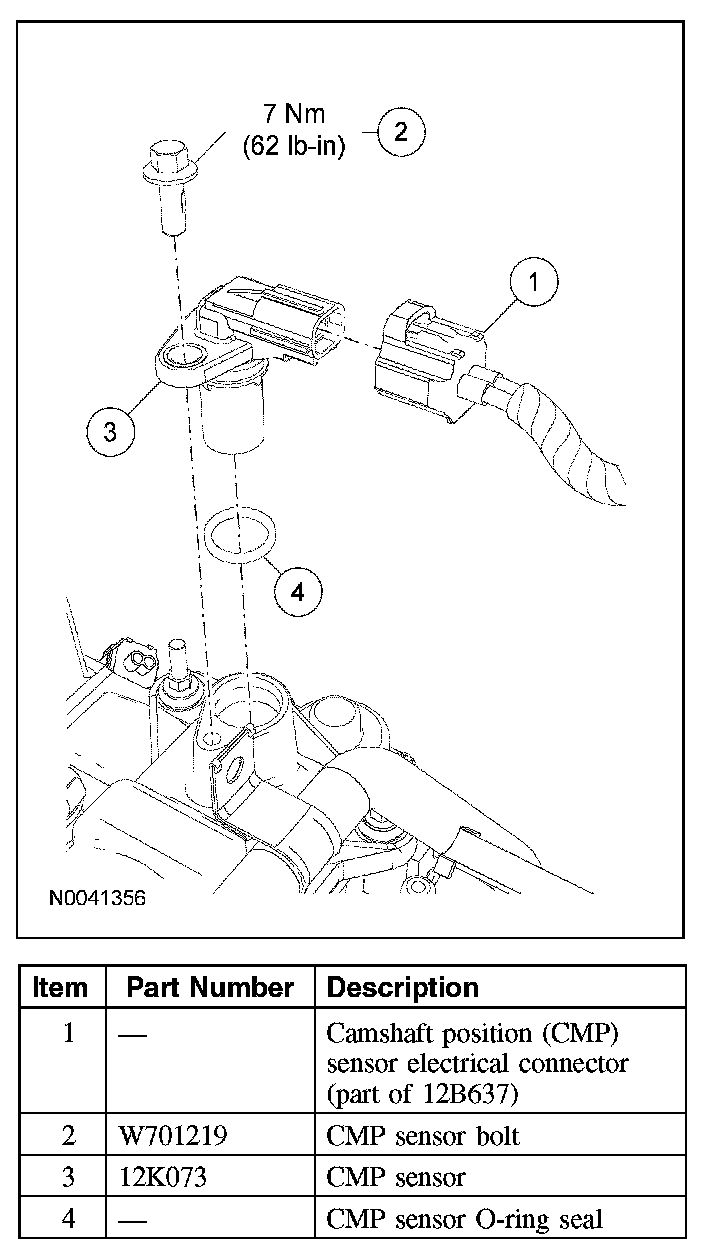 4. Remove the bolt, the CMP sensor and discard the O-ring seal.