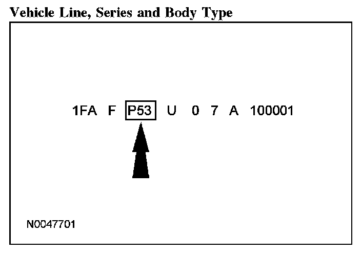 Positions 5 through 7 indicate vehicle line, series and body type.