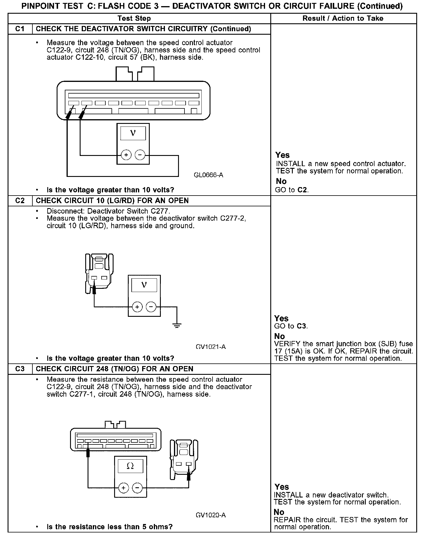 PINPOINT TEST C: FLASH CODE 3 - DEACTIVATOR SWITCH OR CIRCUIT FAILUREC1: