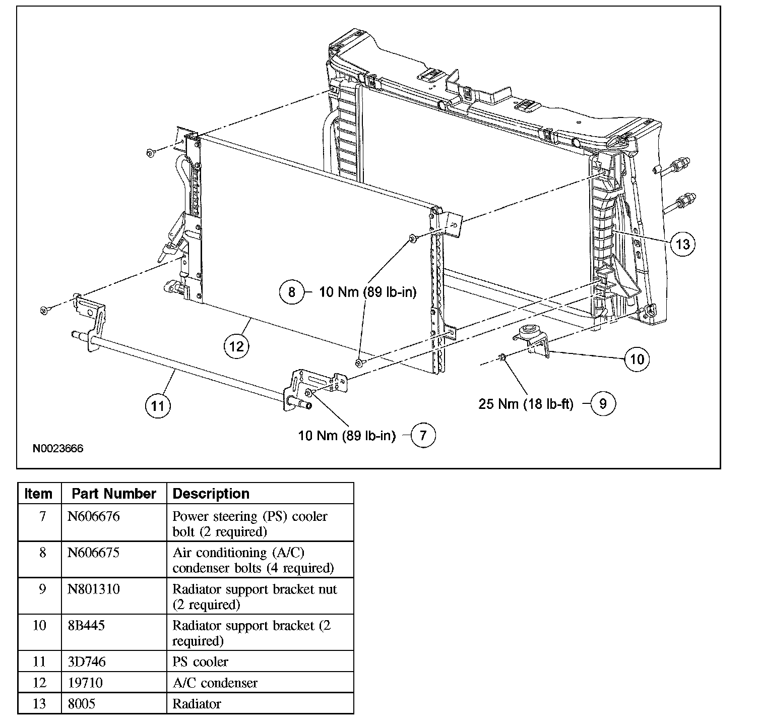 11. NOTE: Secure the A/C condenser.