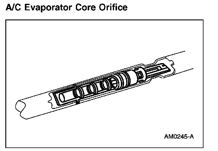 - O-ring seals on the A/C evaporator core orifice prevent the high-pressure liquid refrigerant from bypassing the A/C evaporator core orifice.