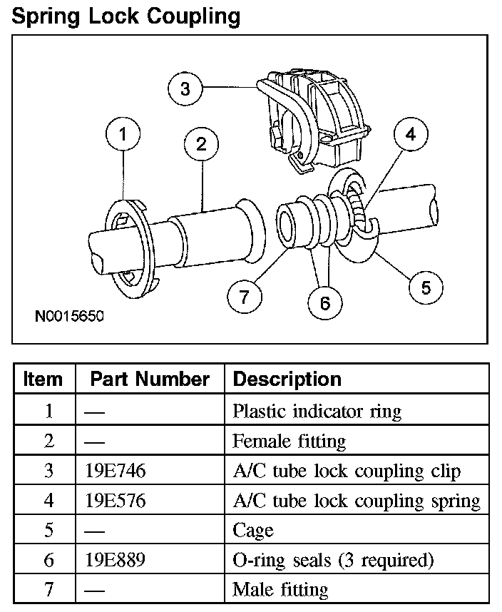 - Use only the O-ring seals listed in the Ford Master Parts Catalog for the spring lock coupling.