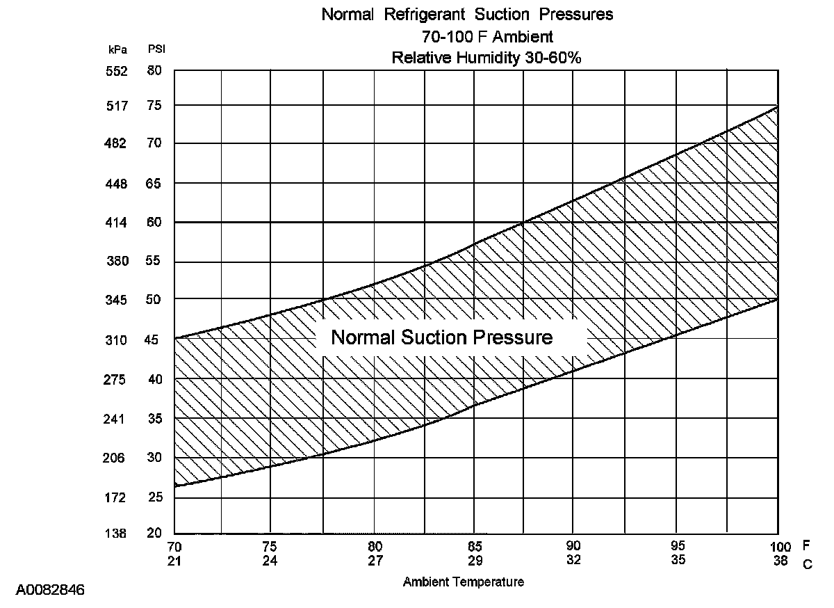 - The system performance can be evaluated and diagnosed by analysis of the compressor suction and discharge pressures. The following procedure is used to determine if the system is operating at normal pressures.
