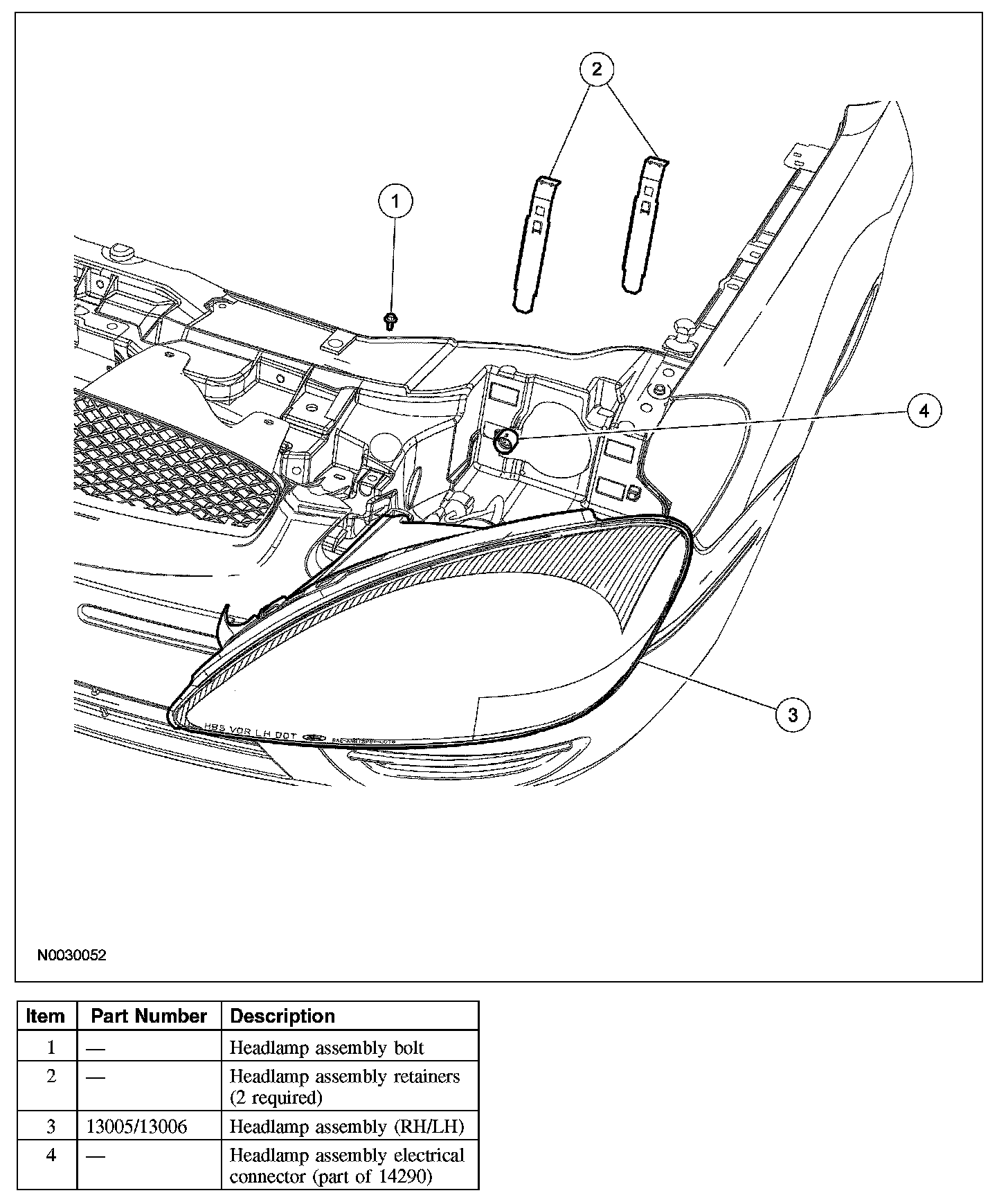 - Make sure the headlamp wiring harness does not get caught between the headlamp and grille opening reinforcement. If it does, position the harness free of all mounting points.