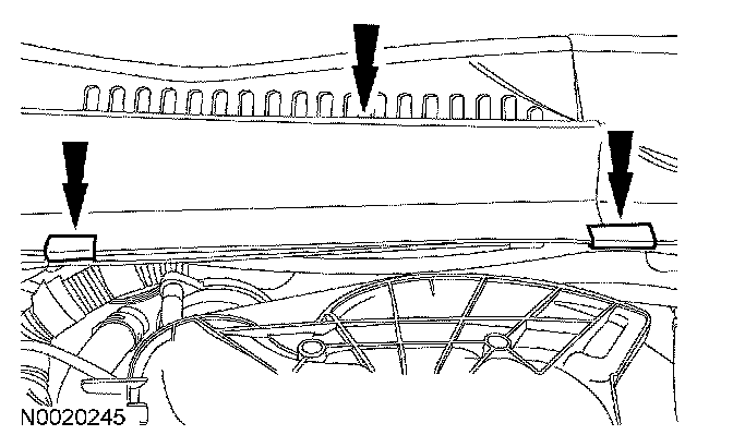4. Remove the 3 retaining clips (2 shown) and the RH cowl panel grille.