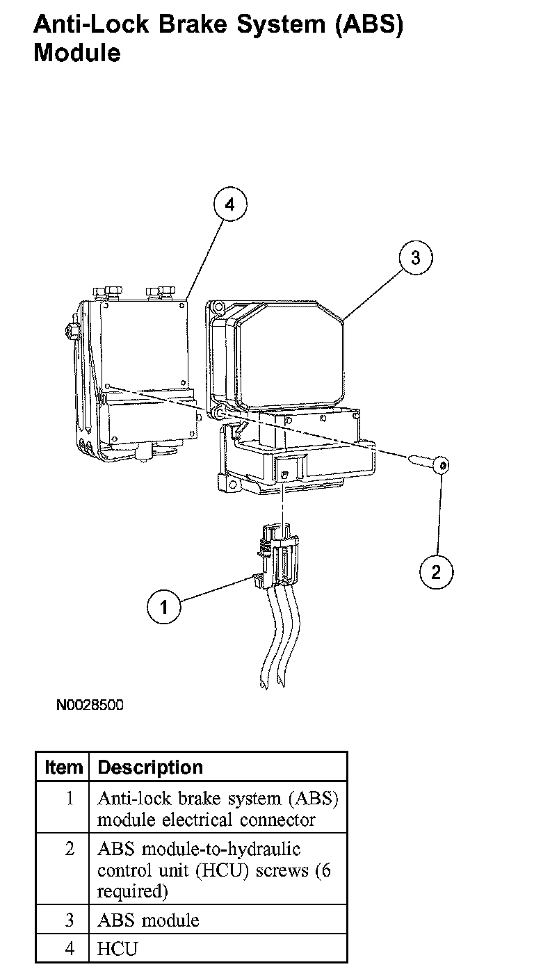 3. Remove the 6 ABS module-to-HCU screws.