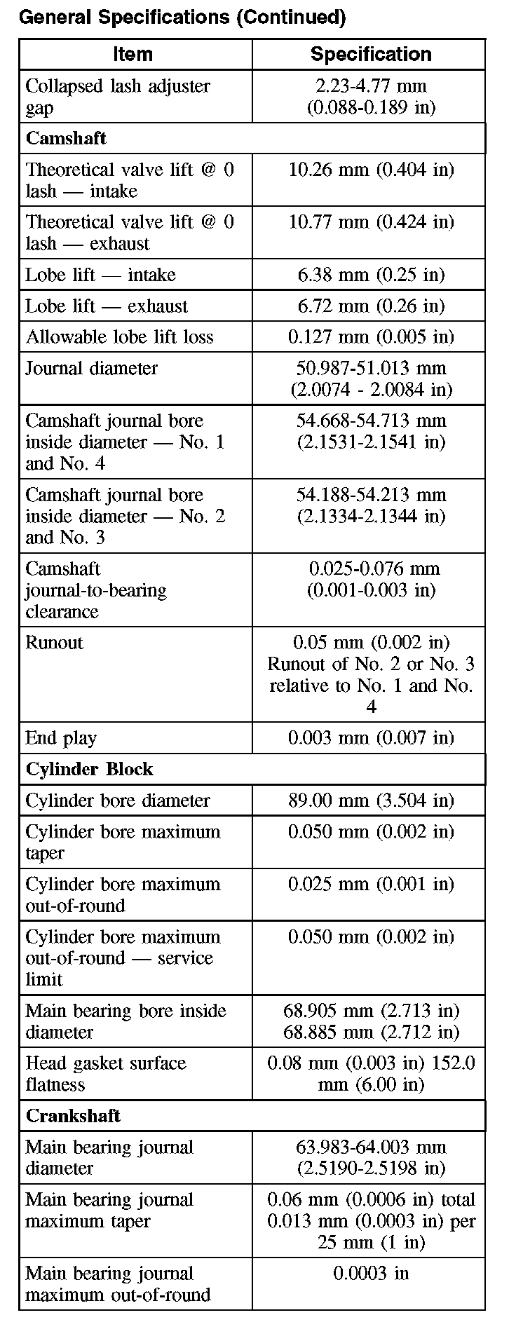General Specifications