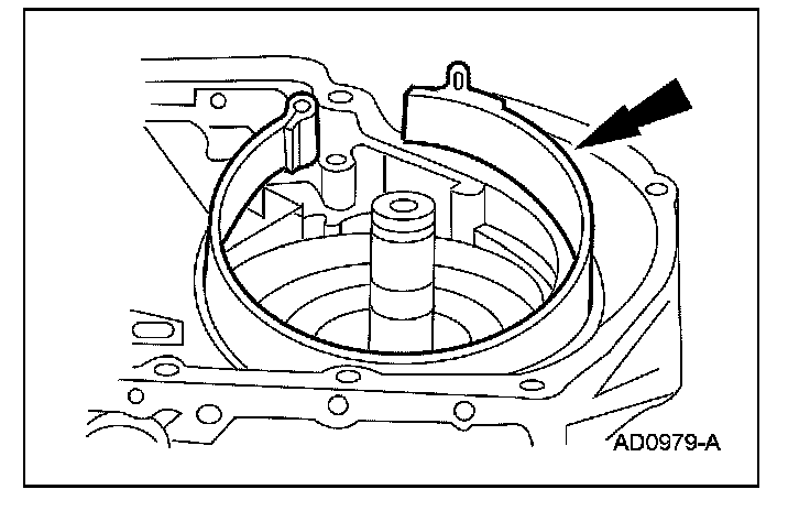 Install the overdrive band anchor strut with the cross hairs facing upward.