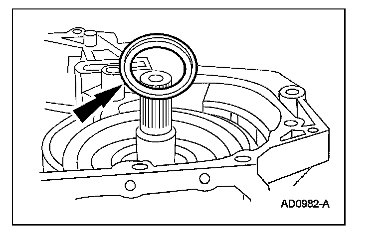55. CAUTION: The No. 9 direct hub needle bearing may still be inside the transaxle from the No. 8 driven sprocket support thrust washer selection procedure. Use petroleum jelly to hold bearing and washer in place.