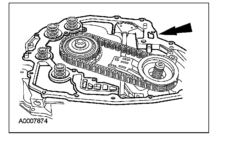 63. NOTE: The manual control valve detent lever must be installed with the shoulder and roll pin hole pointing toward the driven sprocket support.