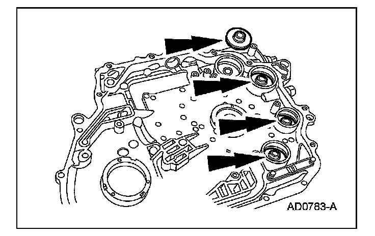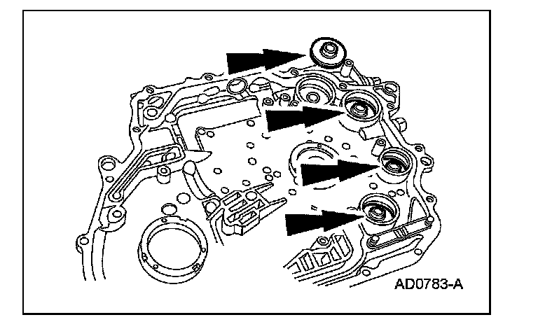 7. NOTE: The use of petroleum jelly will hold the accumulator piston shafts in place while assembling the chain cover.