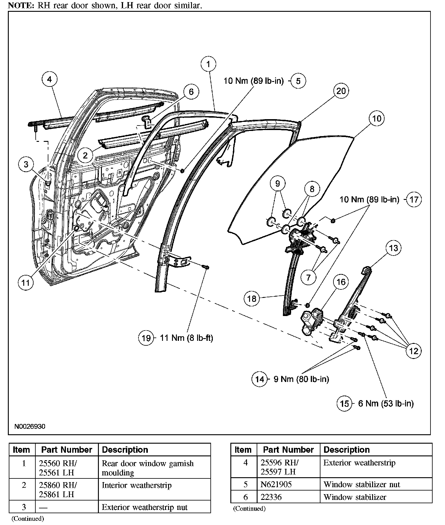 WINDOW REGULATOR AND MOTOR - REAR DOORSpecial Tool(s):