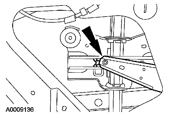 6. WARNING: If the rear door window regulator counterbalance spring must be removed or replaced for any reason, make sure that the rear door power window regulator arms are in a fixed position prior to removal to prevent possible injury during C-spring unwind. Failure to follow these instructions may result in personal injury.