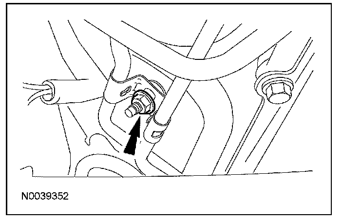 8. Remove the bolt retaining the line routing bracket to the engine and remove the transmission fluid cooler tube(s).