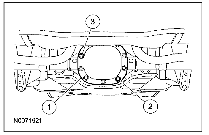 1. Remove the 10 differential housing cover bolts and drain the lubricant from the differential housing.