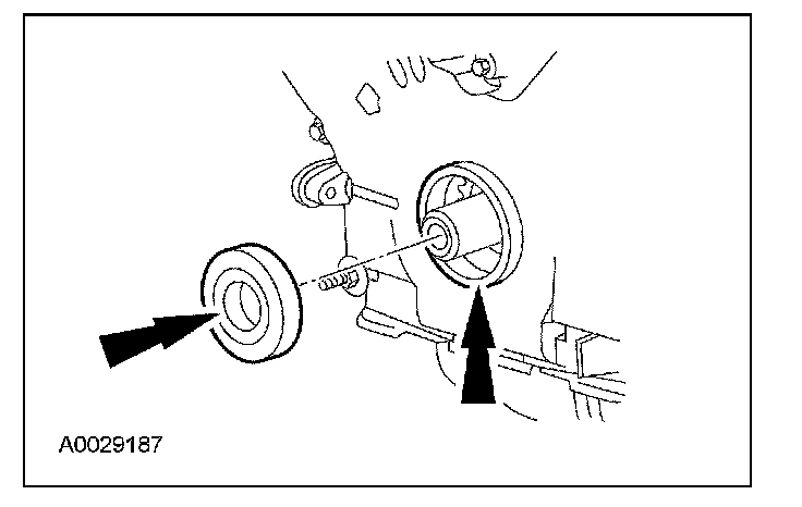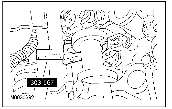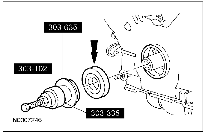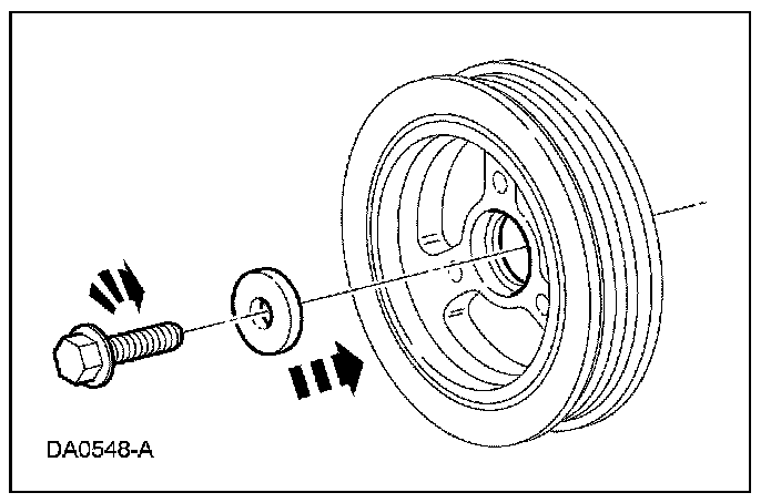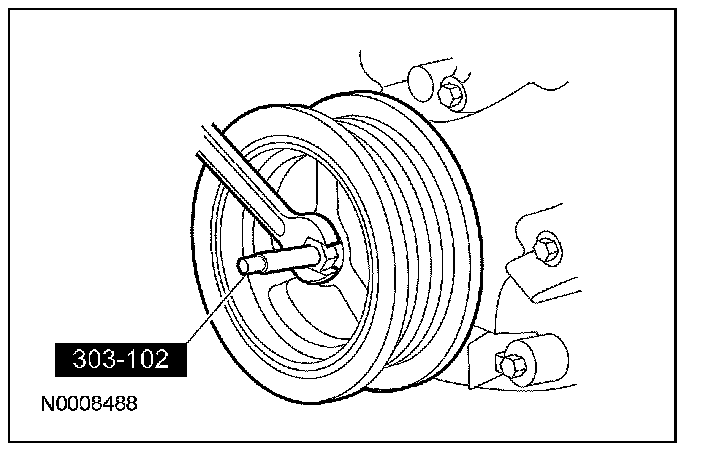 67. NOTE: Use a suitable strap wrench (303-D055) to hold the pulley while tightening the bolt.