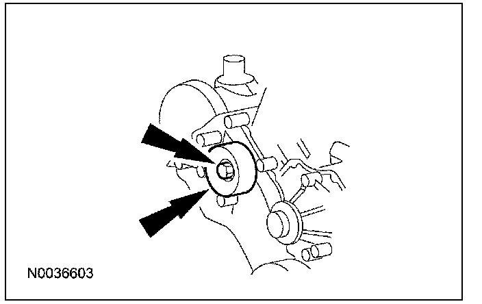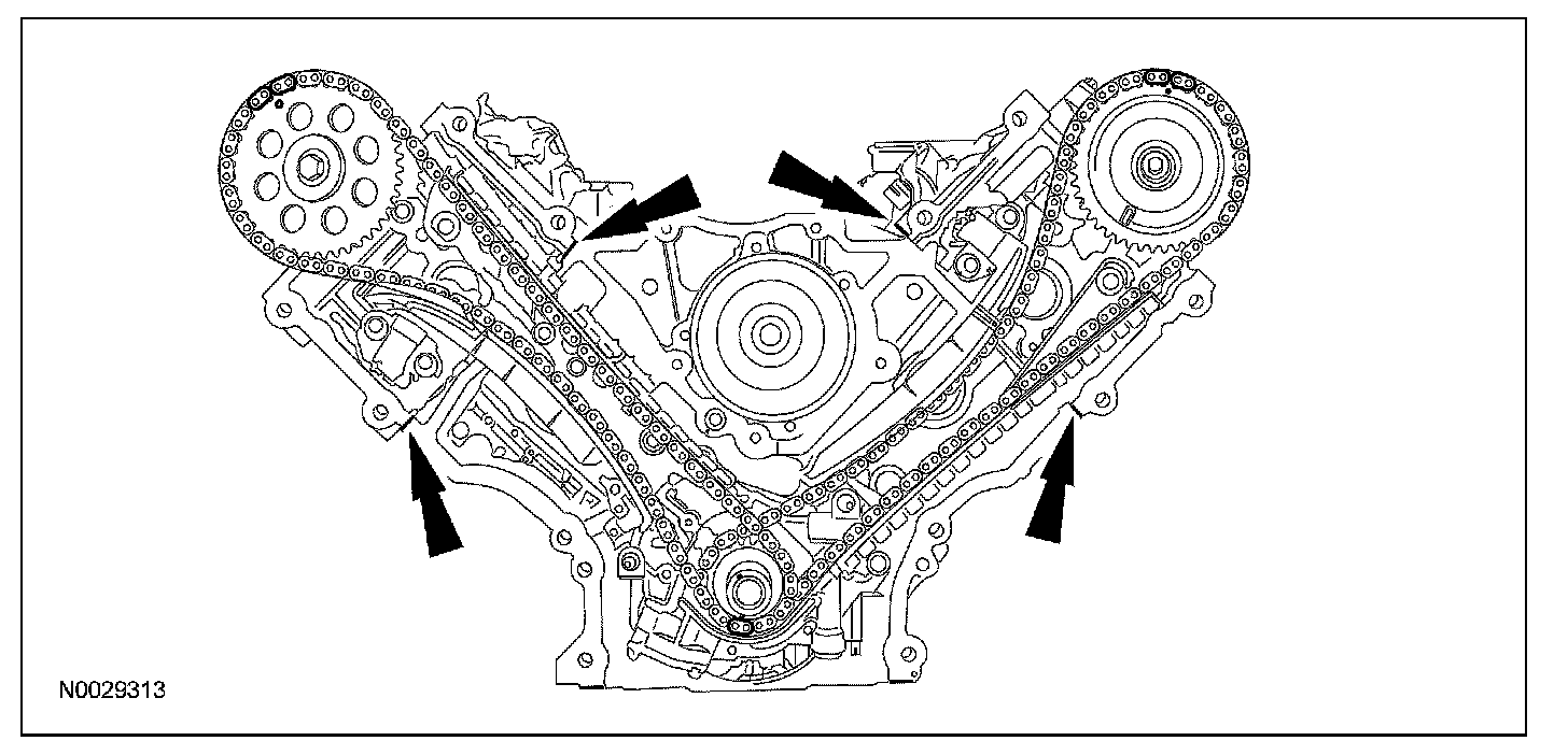 36. NOTE: The LH timing chain tensioner arm has a bump near the dowel hole for identification.