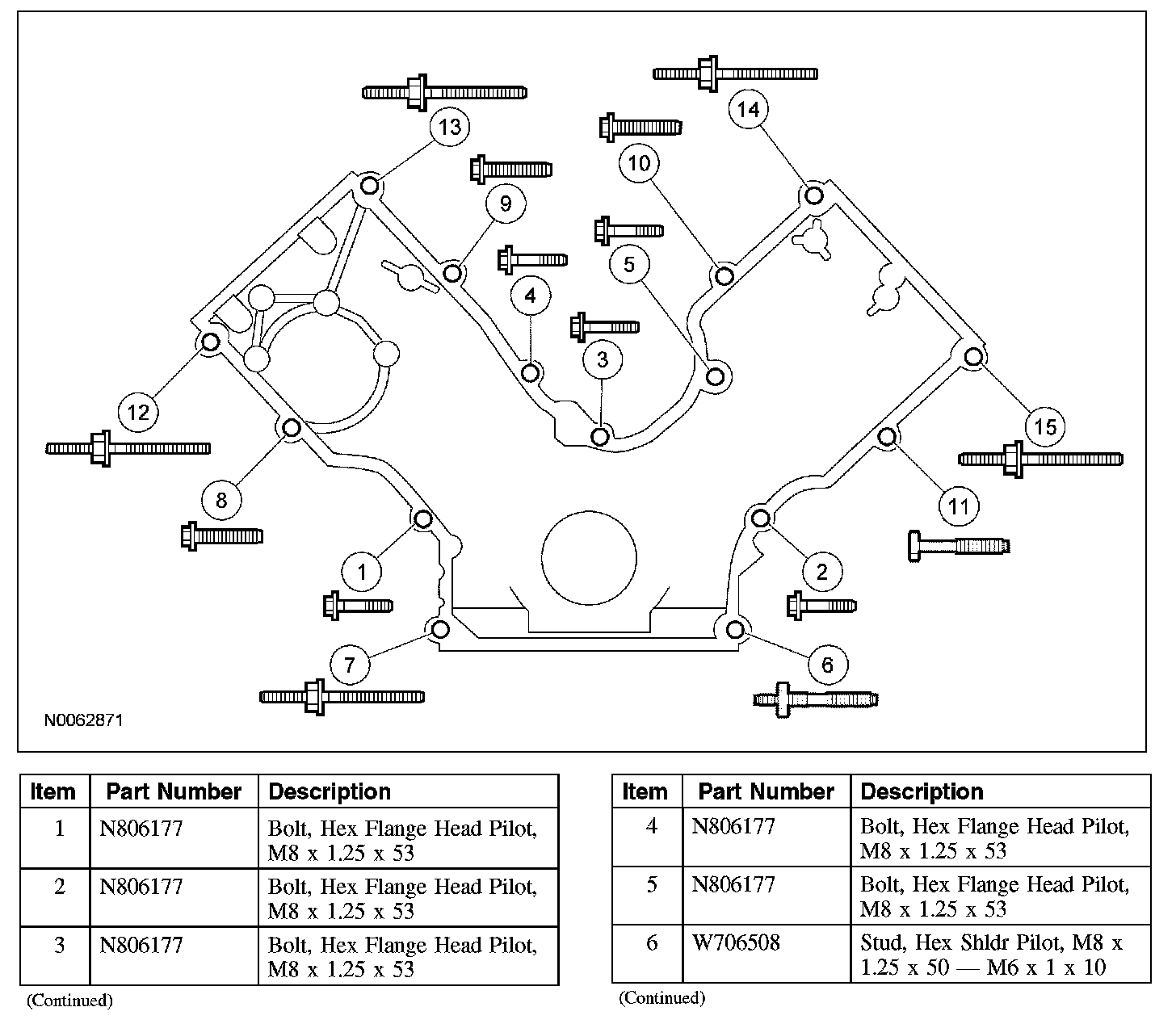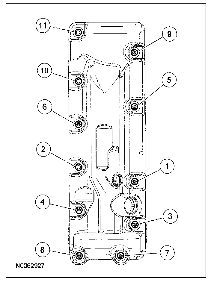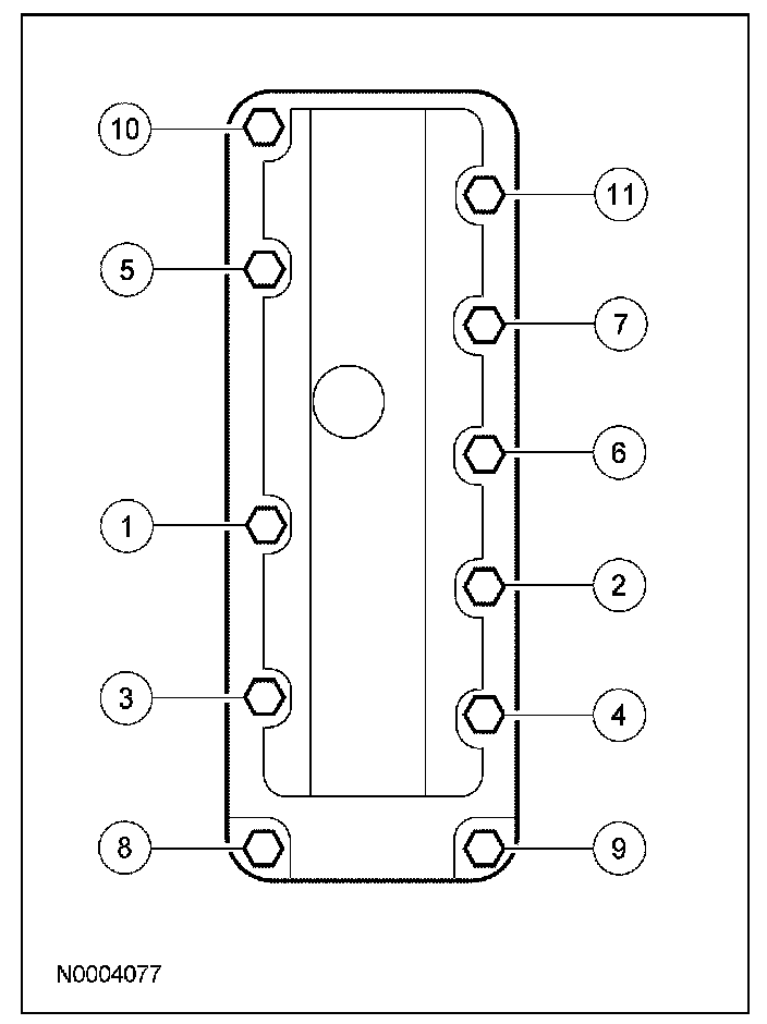 50. Tighten the front cover fasteners in the sequence shown to 25 Nm (18 lb-ft).